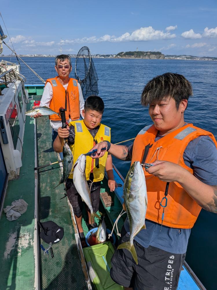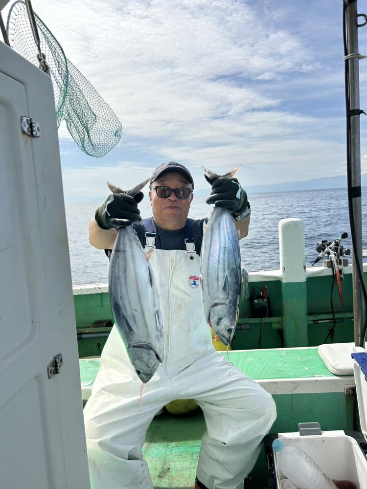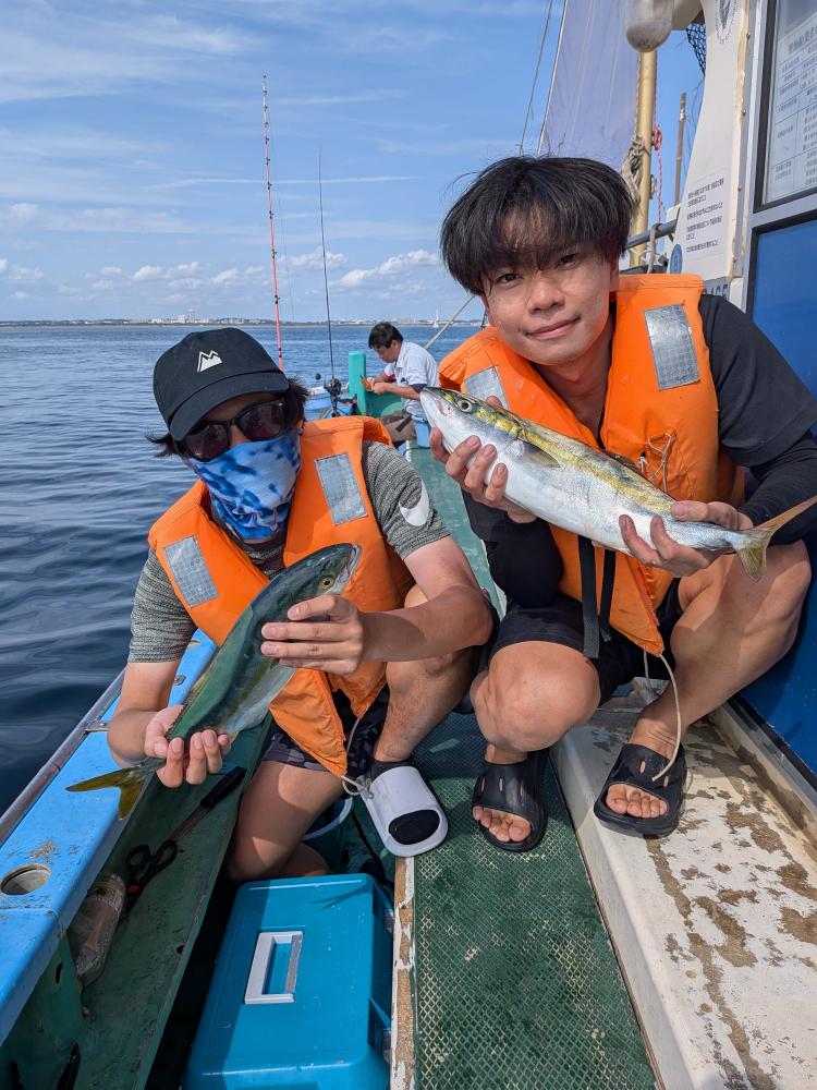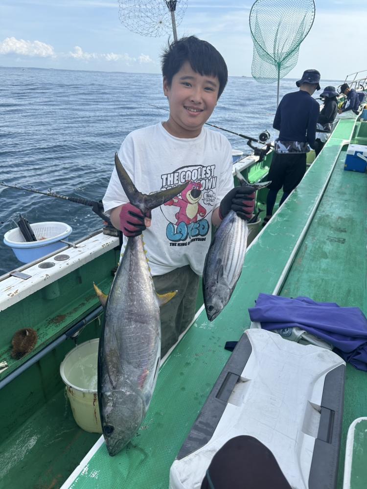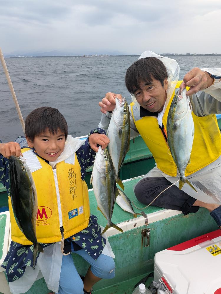 今日はビギナーさんのみで親子連れのお客様とルアーとサビキのお客様のみでコマセ効かない状況でしたが親子連れのお客様はお子様はサビキ食わせ、お父様は天秤シャクリでやって頂きお二人様共にたまには良型イナダゲット出来ました。ルアーとサビキのお客様はルアーでカンパチ4匹でサビキではイナダもポチンポチンとアタリ、スペシャルゲストにマダイ6.5キロ、ワラサもゲット出来て、両者共にクーラー満タンで少し早めの帰港となりお土産バッチリ、他ソーダ類など交じり。明日も頑張ってみますのでご予約お待ちしております。サビキ食わせでも天秤仕掛けどちらでもチャレンジ下さい。ベイトが掛からない時は天秤仕掛けに変えましょう。イカ餌は必ず持って行きましょう。ルアーでも楽しめます。イナダはほとんど45センチオーバーと良型でした。