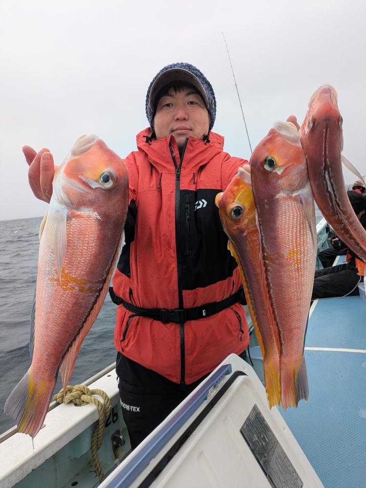 朝は金目鯛中心にスミヤキ 黒ムツまじりにあたりでてました一荷混じりでした
