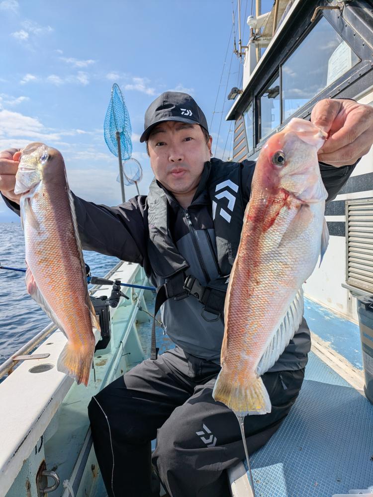 昨日の冷たい潮で反応あっても食わないのか見間違いなのか全くあたりでません ポイント探索しても状況変わらずまいりました 10時過ぎまでアカムツ 白ムツ ドンコでした またまた探索 潮色良く暖かい潮にそうぐう おとしてみましたがあたりが中々出ませんでしたが10時半過ぎにクロムツ初見せスイッチ入ったのかあちこちであたりではじめ1時間半くらい流しどうしで当たり続けダブル トリプルまじりで 帰りしなまで派手さは無いもののあたり続き終わってみたら皆様良いおみやげになり 海上も良い凪にめぐまれ皆様たのしんでいただけました 他には良型赤ムツ 大型メダイ 大型カンコ 白ムツ 大あじ 大サバ ドンコ等 明日も出船します 皆様のチャレンジお待ちしております シンプル仕掛けご用意ください