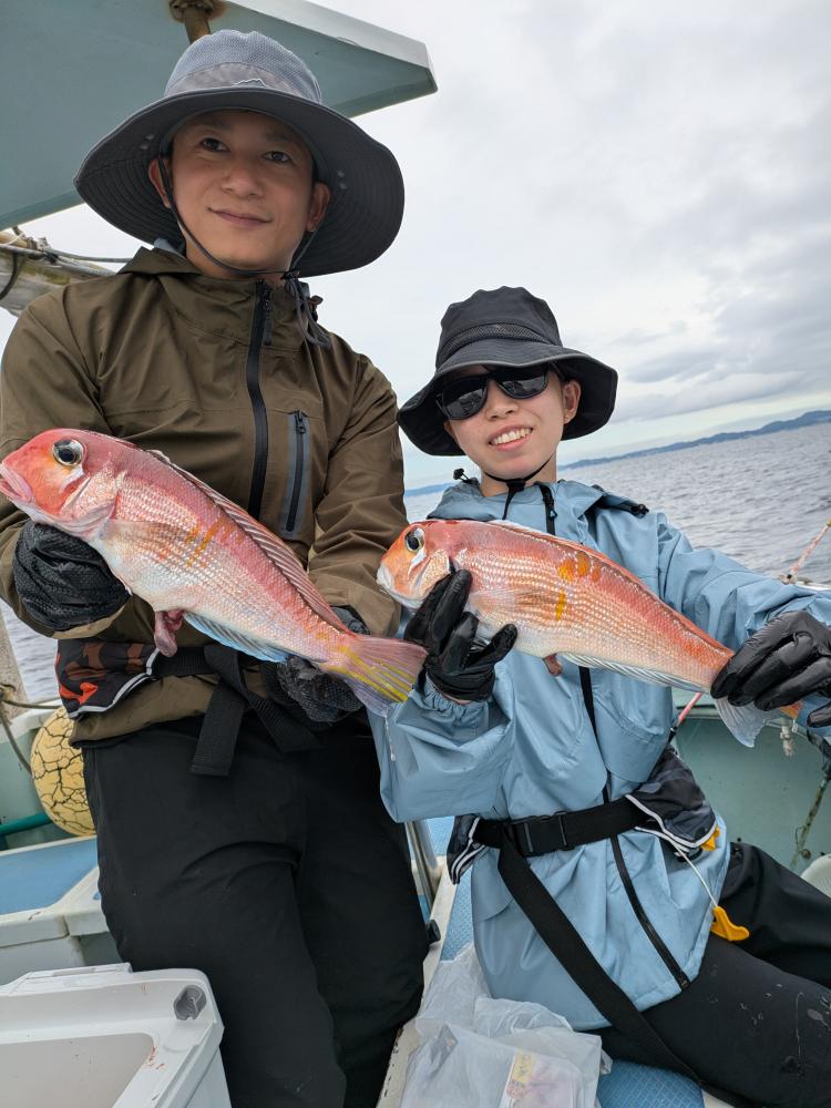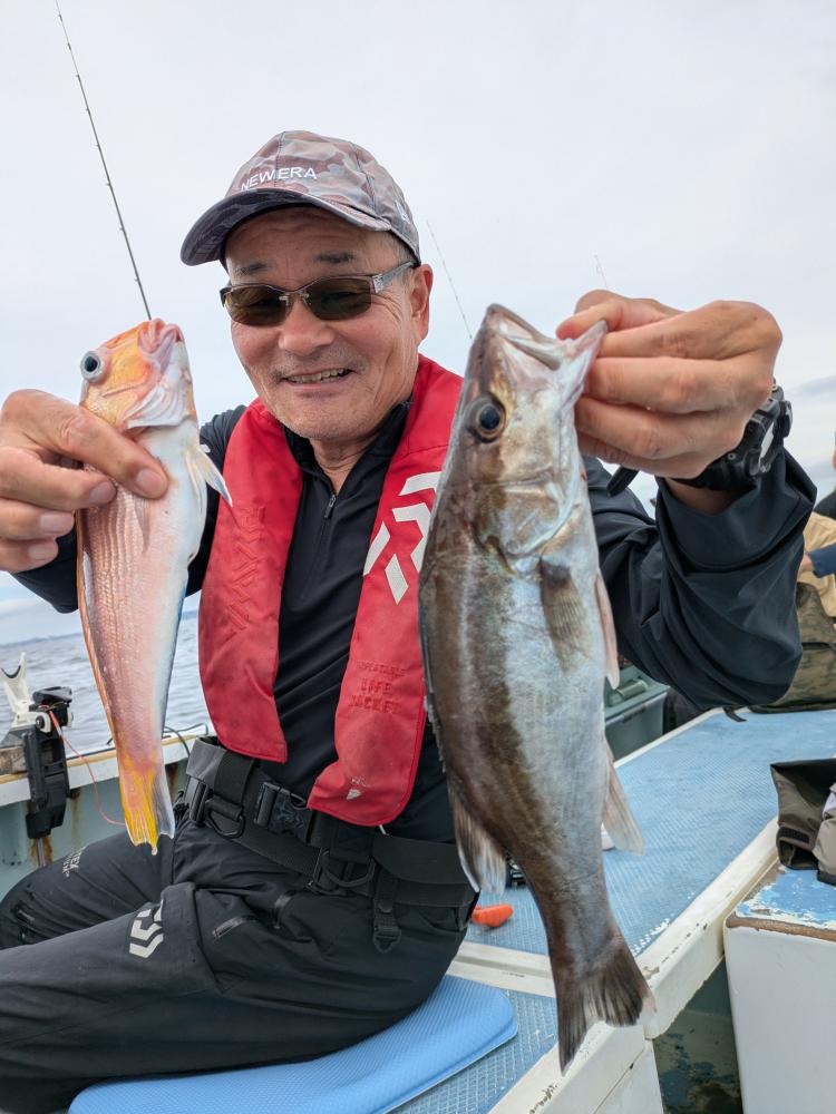 朝のうちは曇り潮流れあって金目鯛 メダイ クロムツ活発にあたり 皆様にヒットする場面もあり今日は良い感じのスタートだったのですが潮流れ無くなりあたりとだえてしまい移動 クロムツ 白ムツあたりでてもサメ被害に遭ってしまい 難しい展開になってしまいました