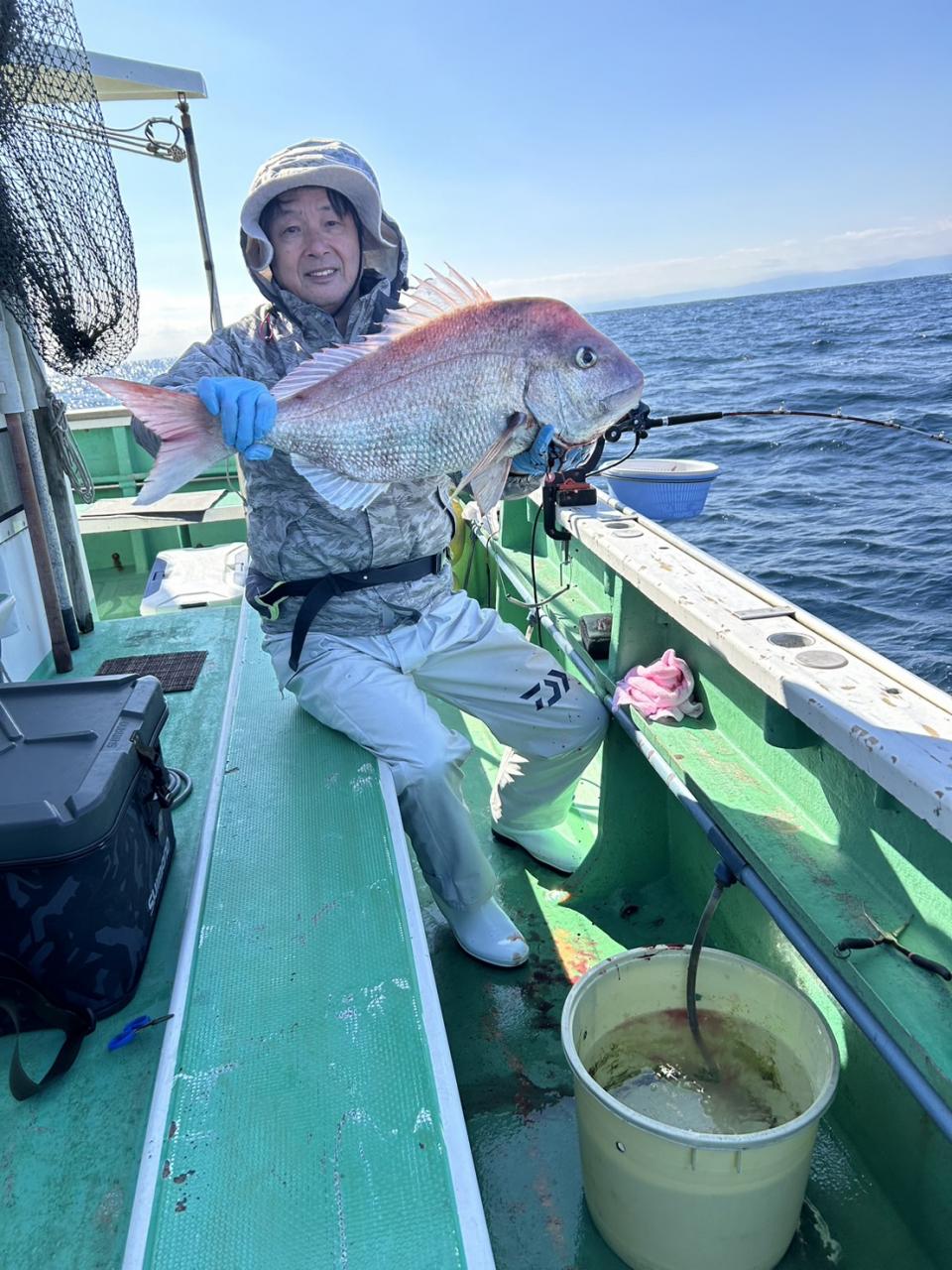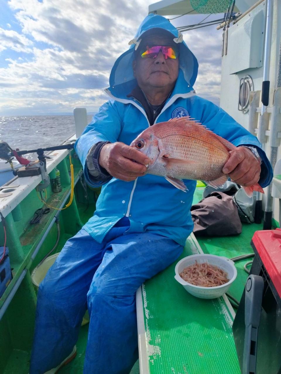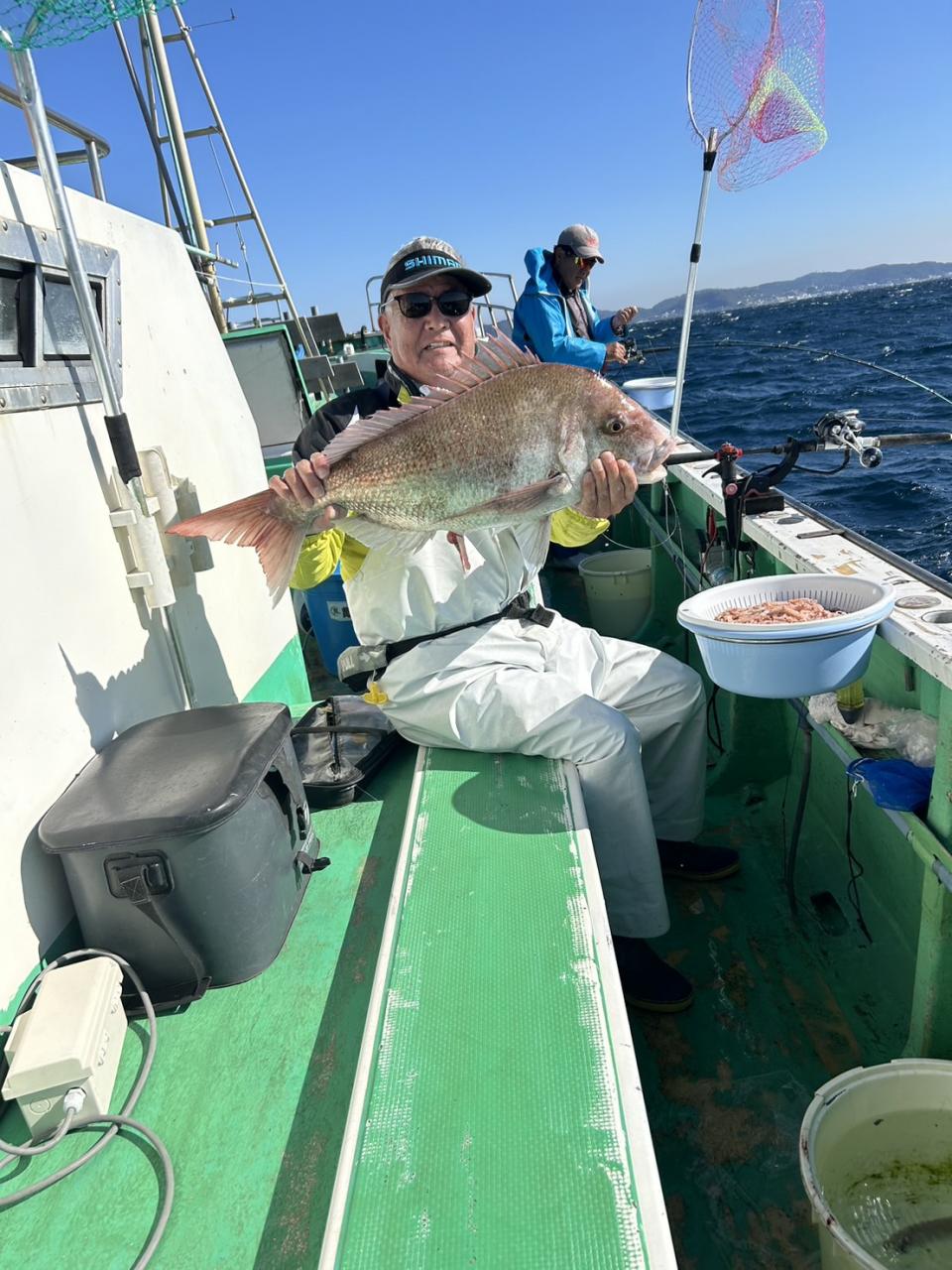 中盤からは深場ポイントで今日はコマセ効かないのでオキアミ餌で