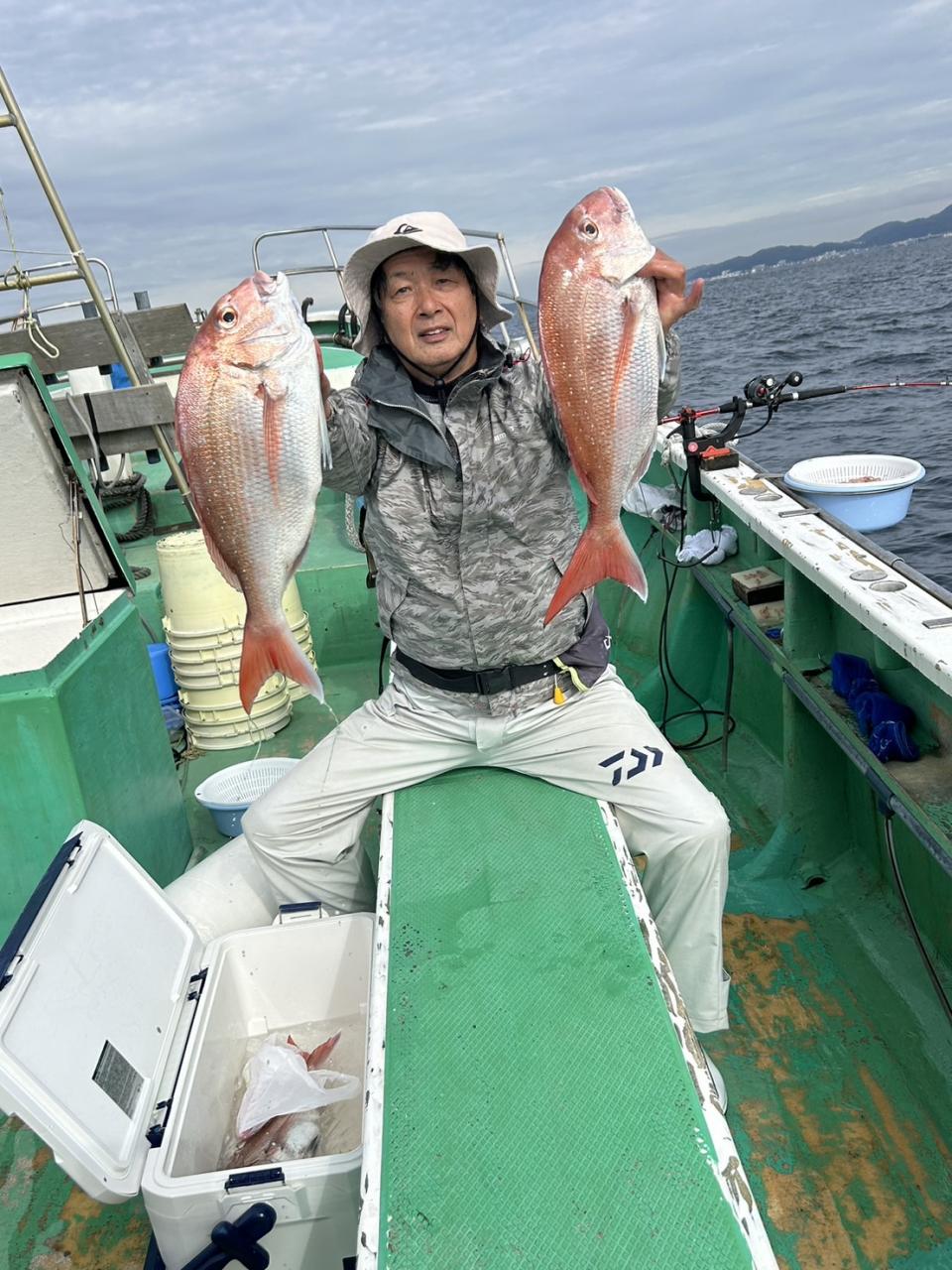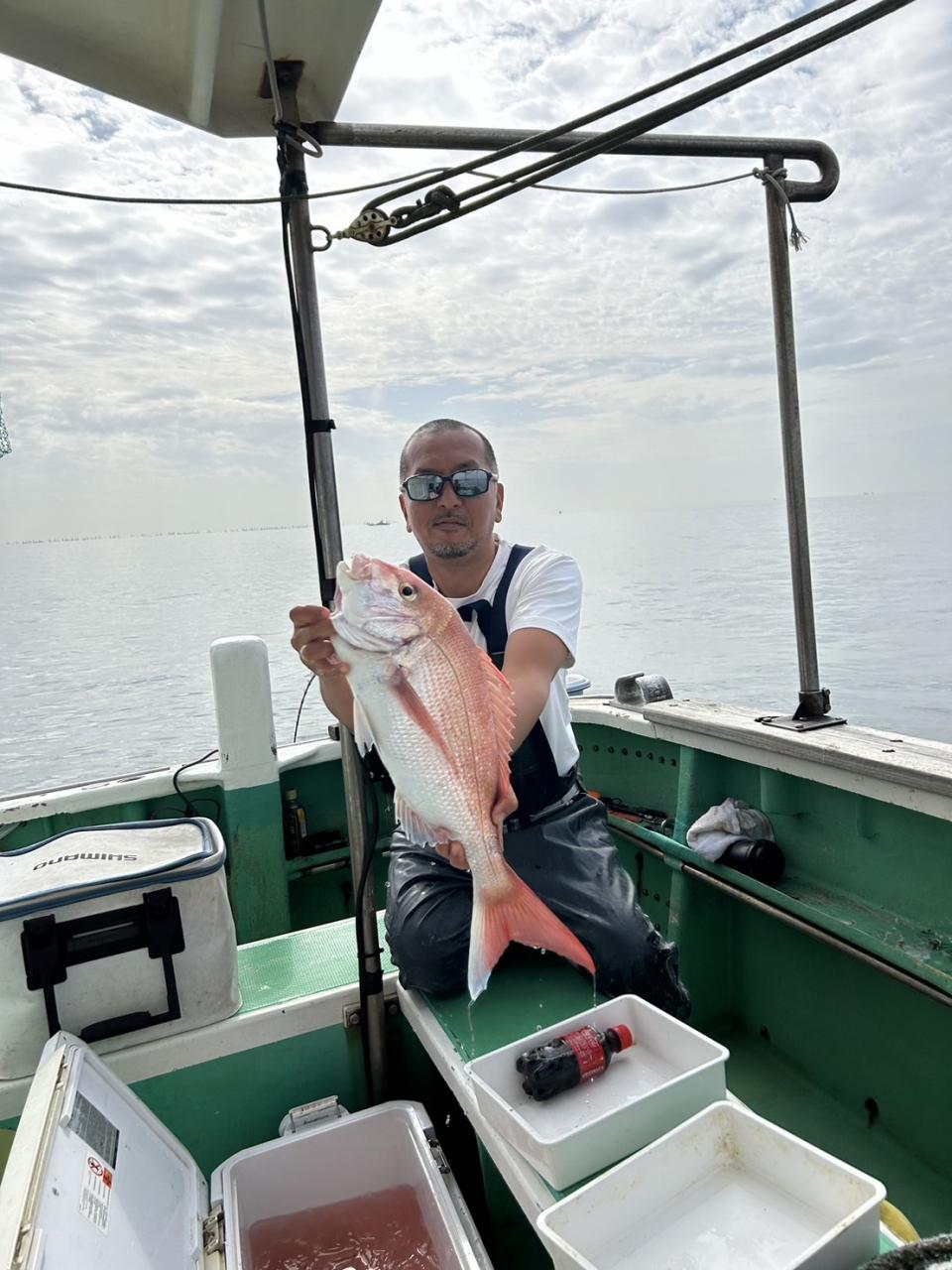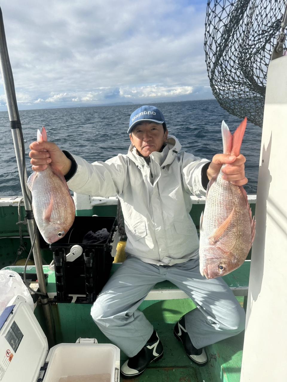 中盤からは深場ポイントで今日はコマセ効かないのでオキアミ餌で