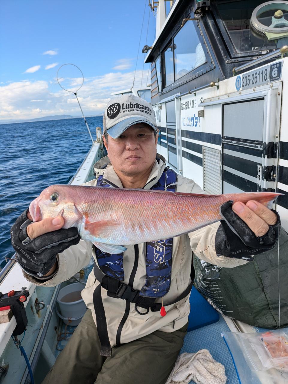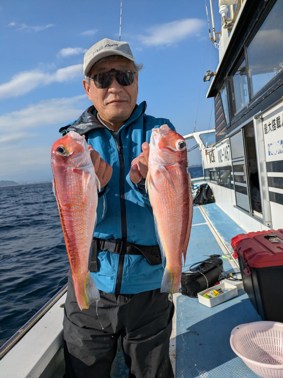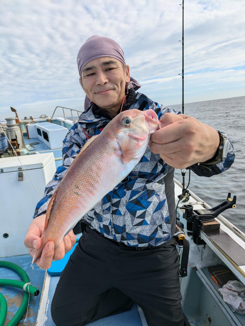 朝の白アマダイは38〜43cm中型が船中計5尾イトヨリ カイワリまじりであたりはすくなかったですね 中盤段々と水深深くして流し80mぐらいまでの浅いポイントながし たまにあたりアジサバイトヨリヒメコダイレンコダイガンゾウ まじりでなにかしらのあたりありましたぬアジは0〜5尾とお土産になったお客様多数でしたがざんねんな方もにさんいらっしゃいました又のリベンジお待ちしています 明日は配船の都合でアマダイ船はお休みします