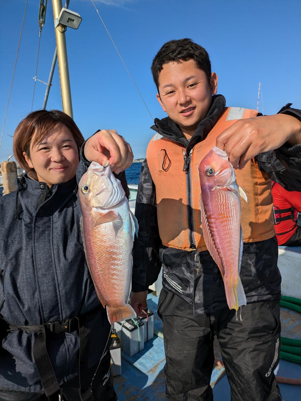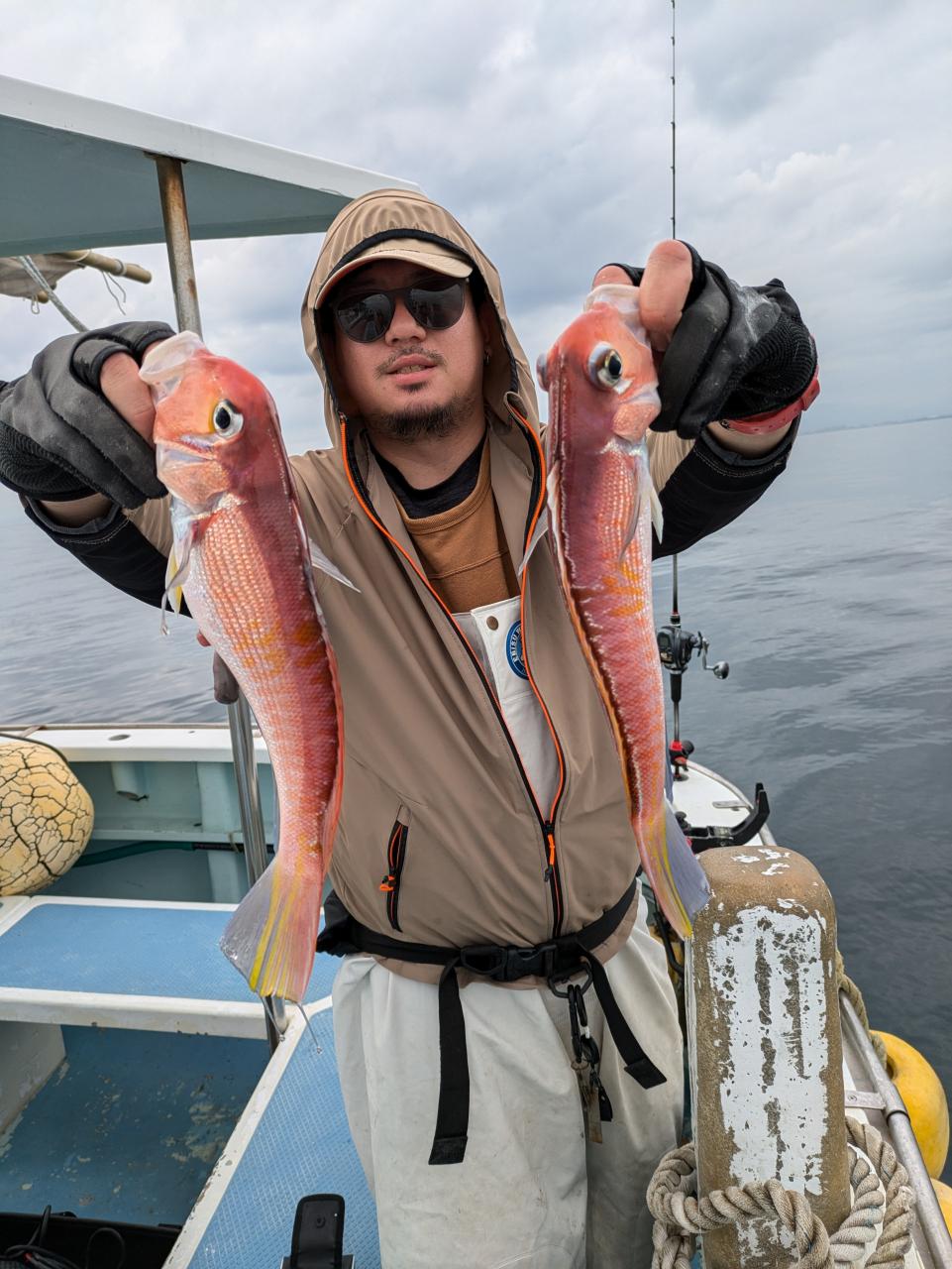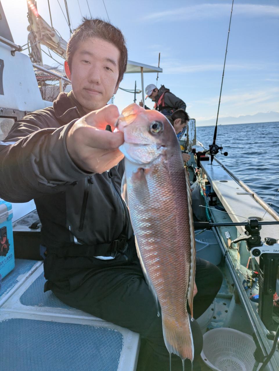 朝の白アマダイは38〜43cm中型が船中計5尾イトヨリ カイワリまじりであたりはすくなかったですね 中盤段々と水深深くして流し80mぐらいまでの浅いポイントながし たまにあたりアジサバイトヨリヒメコダイレンコダイガンゾウ まじりでなにかしらのあたりありましたぬアジは0〜5尾とお土産になったお客様多数でしたがざんねんな方もにさんいらっしゃいました又のリベンジお待ちしています 明日は配船の都合でアマダイ船はお休みします