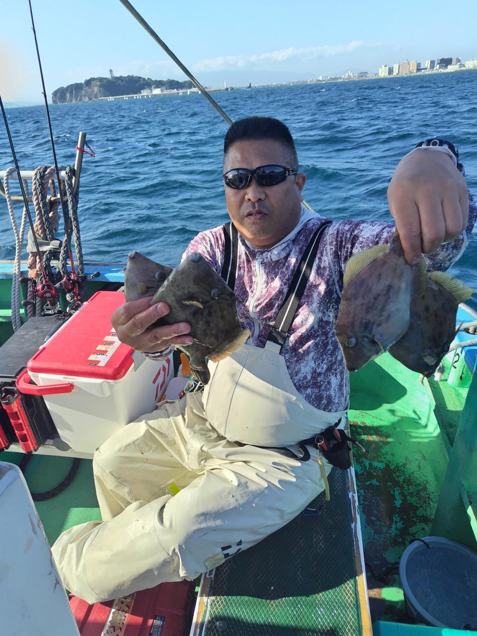 今日は朝の浅場狙いは船中2枚と良型アマダイ イトヨリ カイワリでいつもより潮流れ無かったせいかあたり少なめ早めにきりあげ