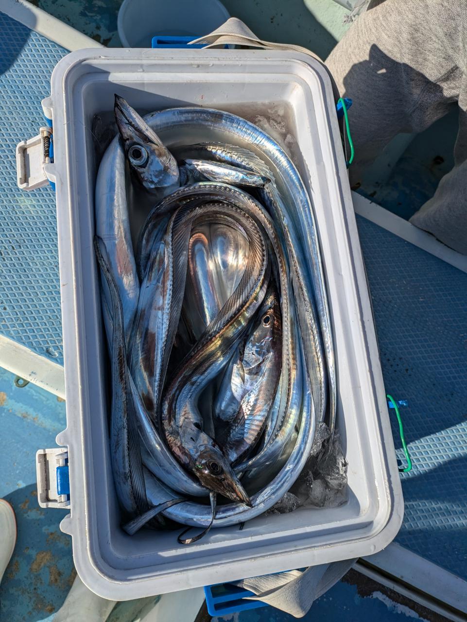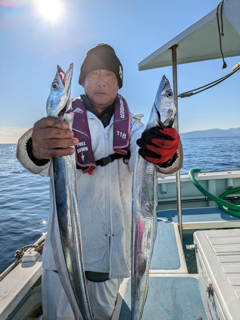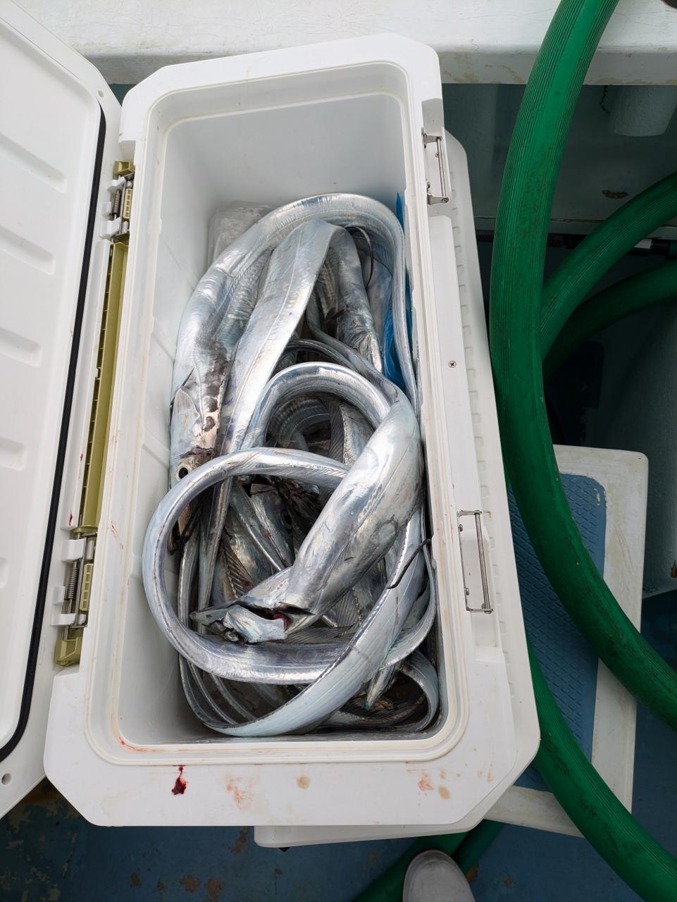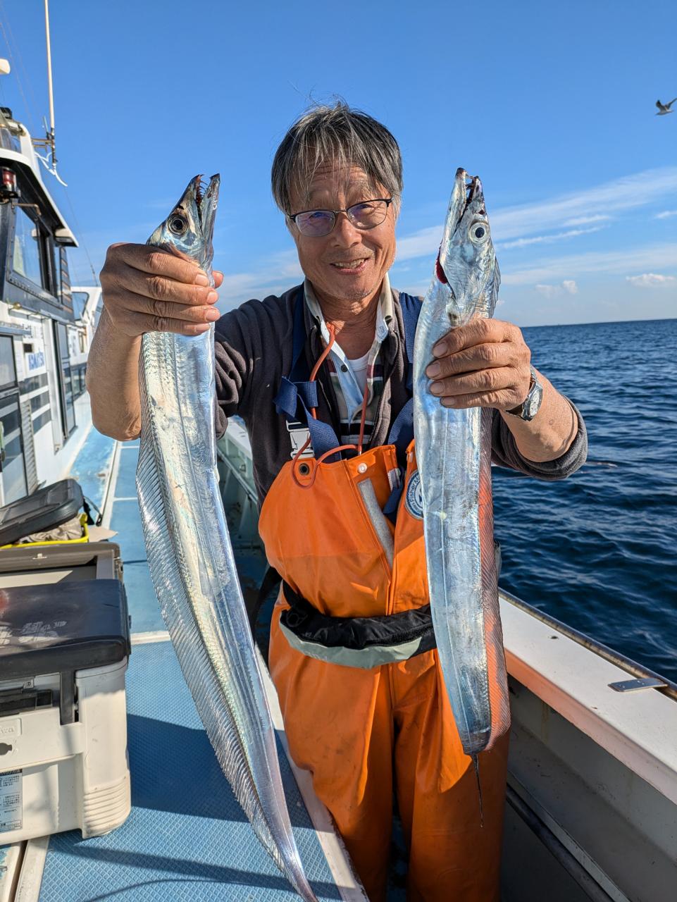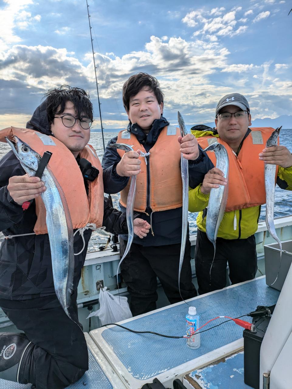 ベテランの方は今シーズンタチウオ4回目チャレンジでやっと24本ゲットしました。誘いパターンやっと掴んでくれたか?残念ながらお一人様坊主出てしまいましたがまたリベンジ下さい。ルアーでのチャレンジでも何とか顔見てくれたので良かったです。餌釣り、ルアー、テンヤ共にテクニック早く掴むかが鍵です。反応あるので魚は居ますがいつスイッチ入るか、いい日に巡り会えるか………!一回で釣ろうと思わないで何回かチャレンジしてみて下さい。とりあえずはビギナーさんでも何本か釣るの目標でチャレンジ下さい。食べて美味しいですよ。