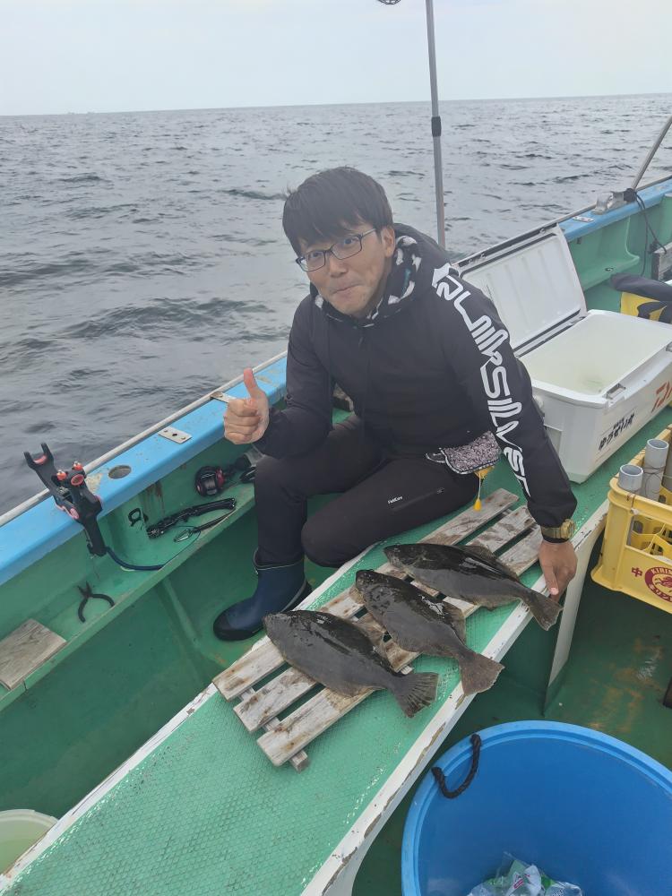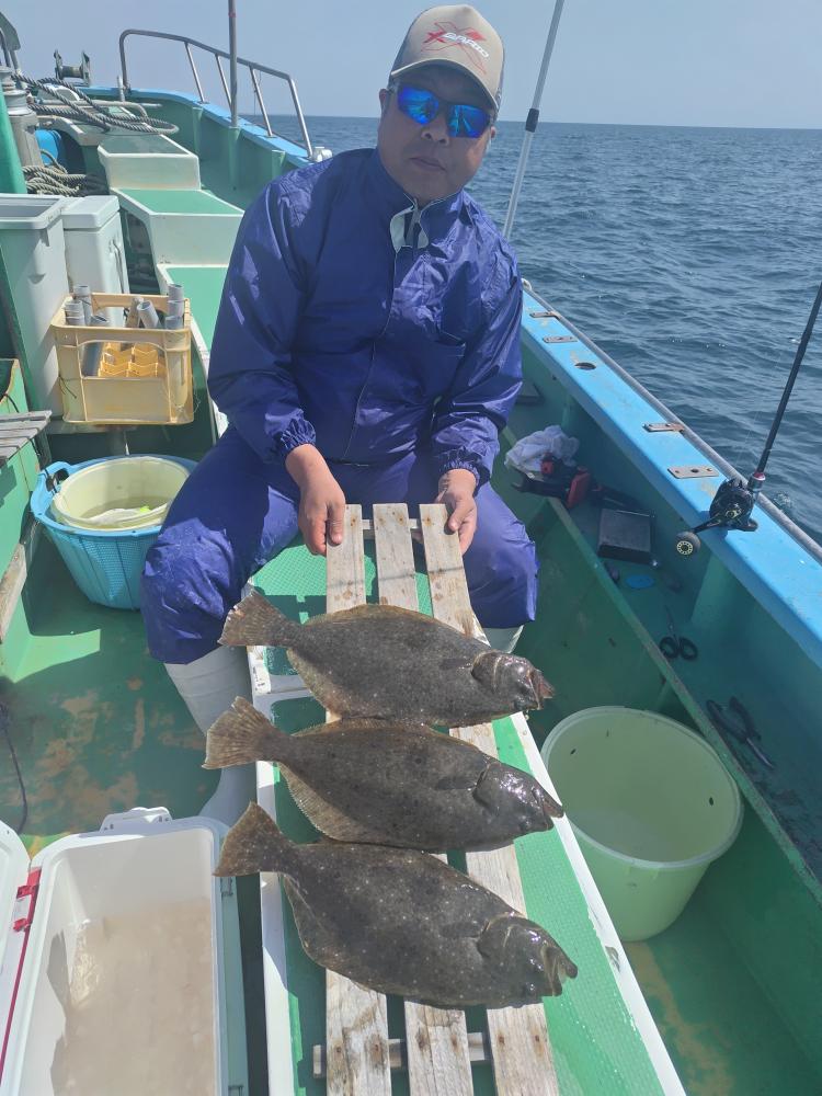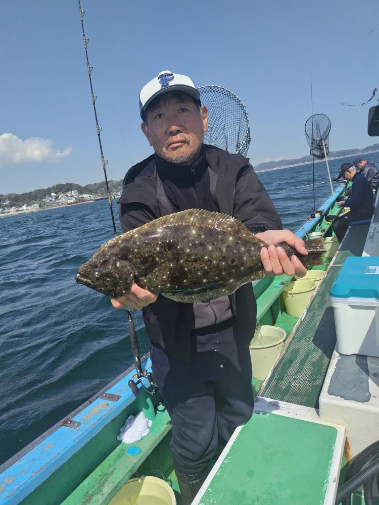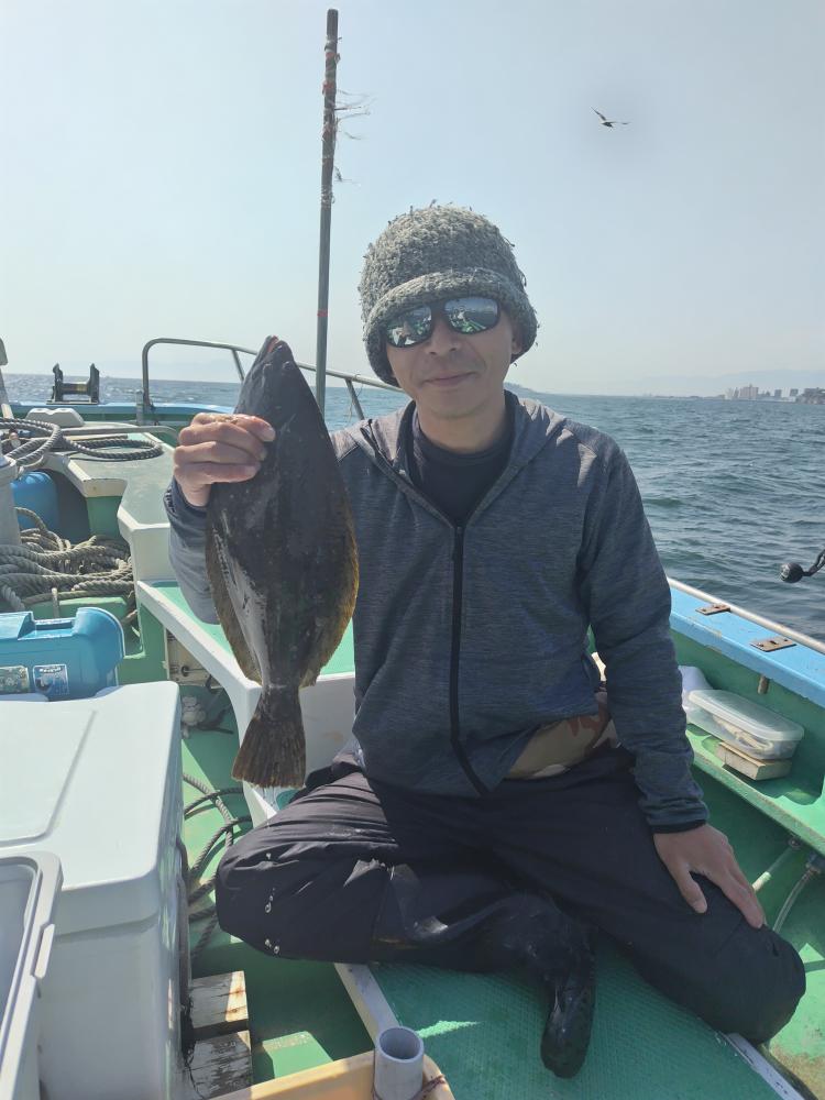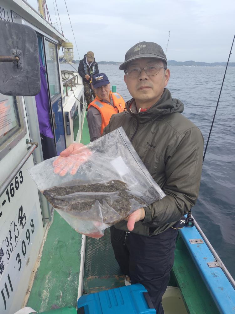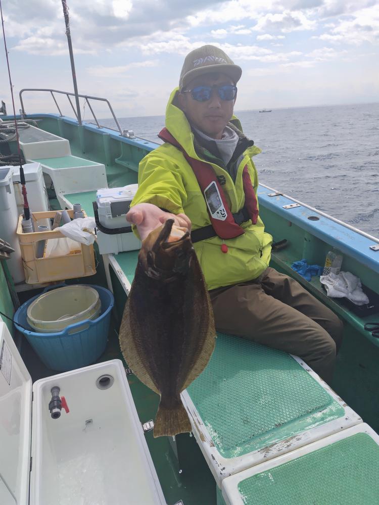 今日はシケ後でどうかと思いましたがアチラコチラのポイントベイト反応ありいい流しはたまにヒットしてくれ何となく各ポイントいる感じでした。トップ5枚断トツ、2番手3枚、1枚4名様で船中12枚とここ最近では良かったというか…今日は慣れてるお客様がいてアタリ出してくれたので釣れたようなもんです。お二人様以外のお客様は中々アタリ出せずでした。スズキ、イネゴチ交じり。これから餌買いに行きますので明日のチャレンジお待ちしておりますので宜しくお願い致します 3.1 2.8キロ良型ゲット。明日は雨、風お昼位まで持ちそうです、シケ前の何CHARAあればいいのですが。