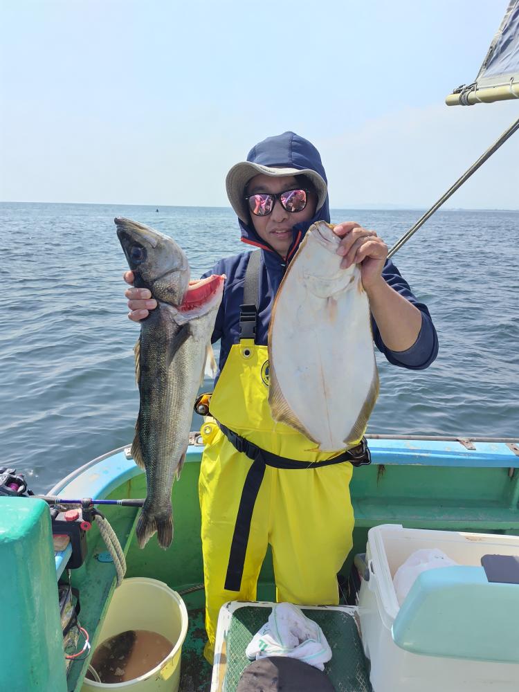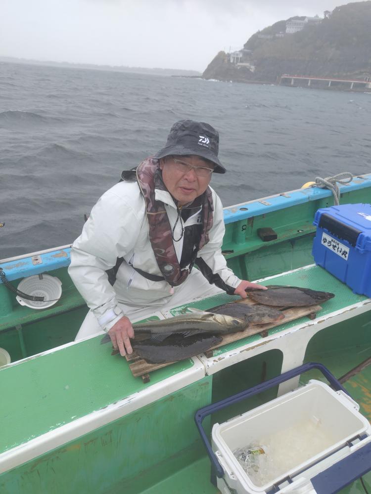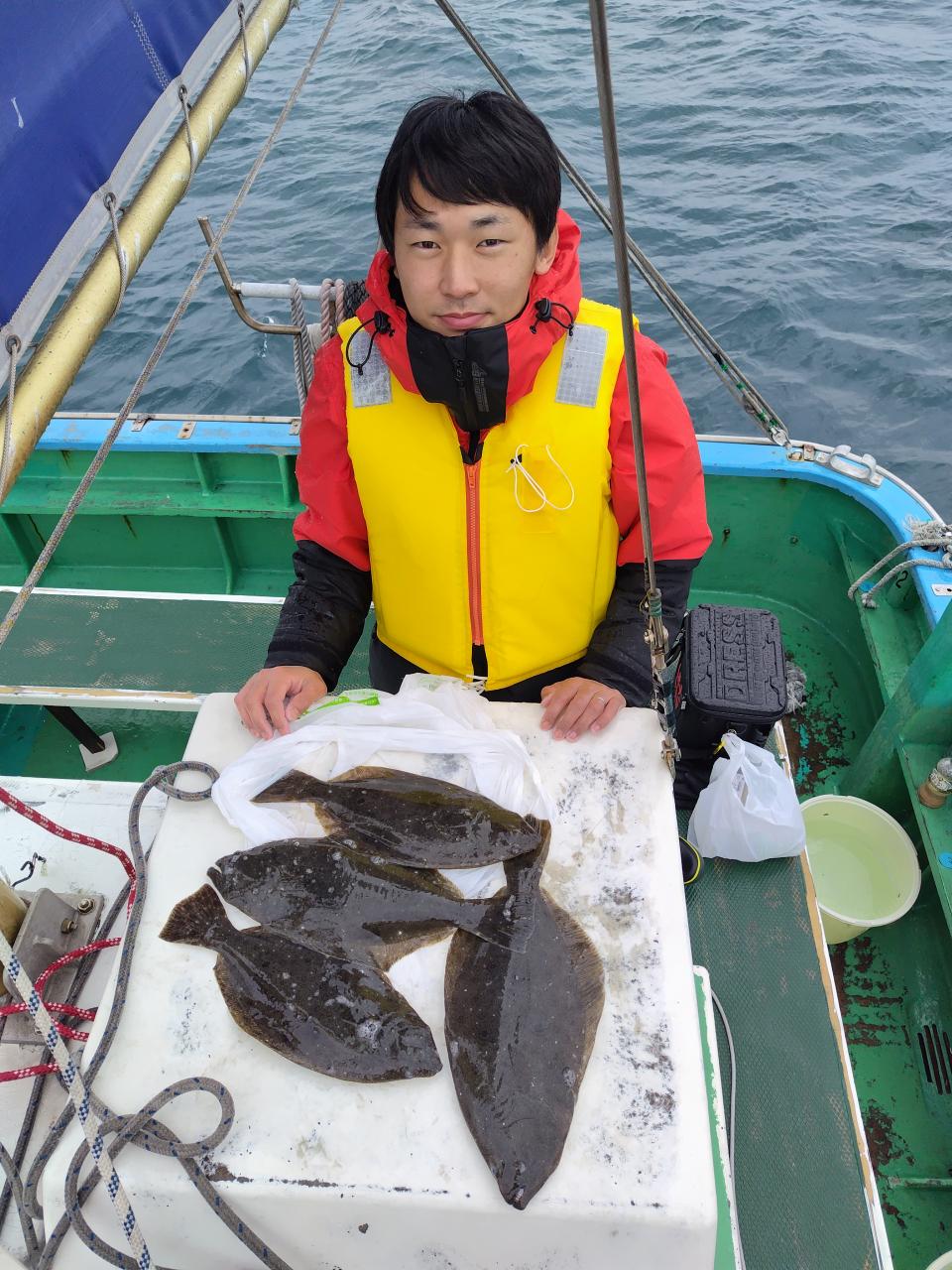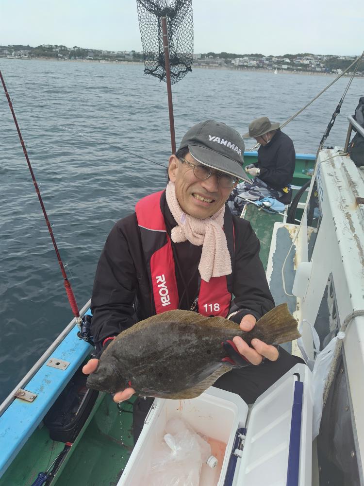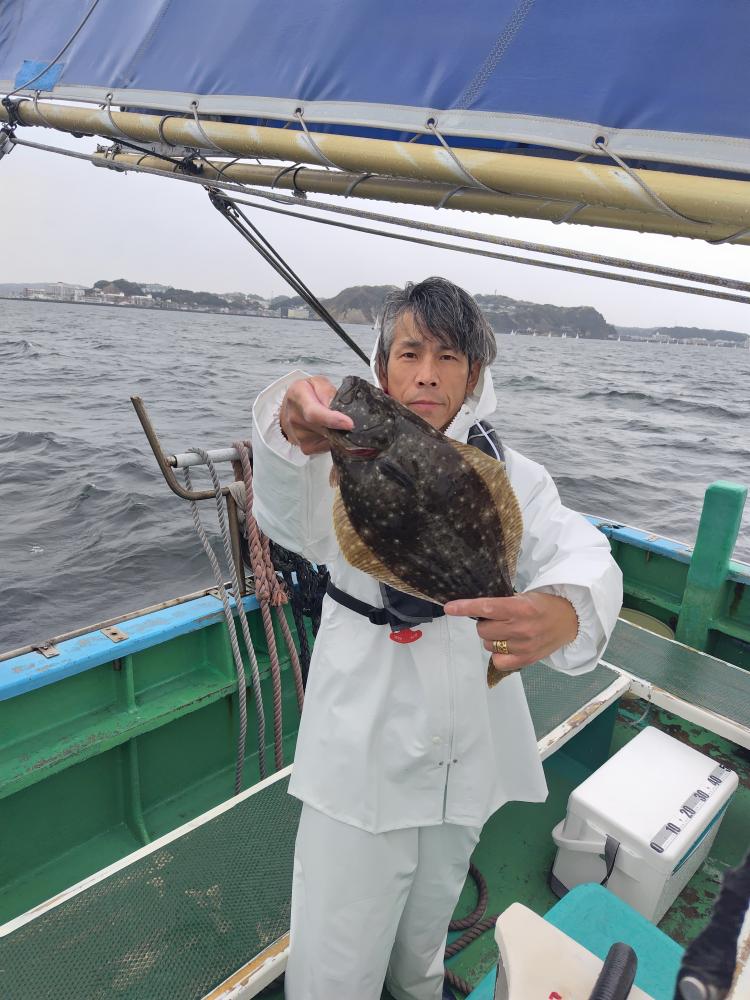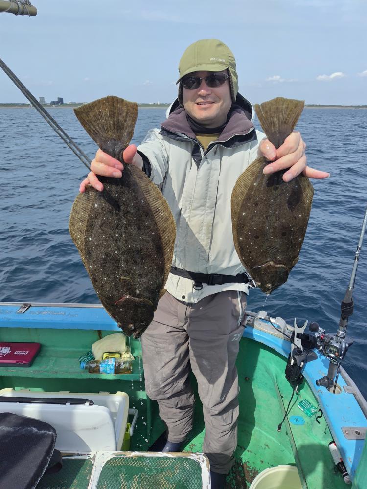 今日はシケ後でどうかと思いましたがアチラコチラのポイントベイト反応ありいい流しはたまにヒットしてくれ何となく各ポイントいる感じでした。トップ5枚断トツ、2番手3枚、1枚4名様で船中12枚とここ最近では良かったというか…今日は慣れてるお客様がいてアタリ出してくれたので釣れたようなもんです。お二人様以外のお客様は中々アタリ出せずでした。スズキ、イネゴチ交じり。これから餌買いに行きますので明日のチャレンジお待ちしておりますので宜しくお願い致します 3.1 2.8キロ良型ゲット。明日は雨、風お昼位まで持ちそうです、シケ前の何CHARAあればいいのですが。