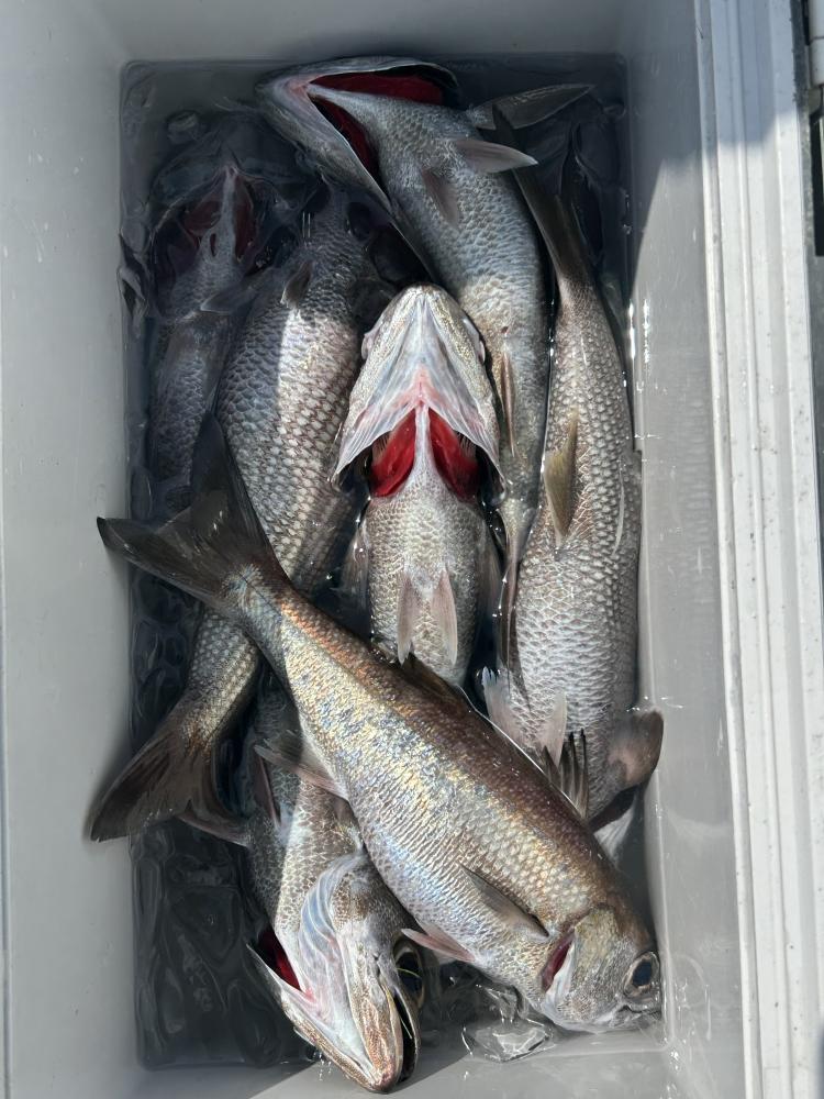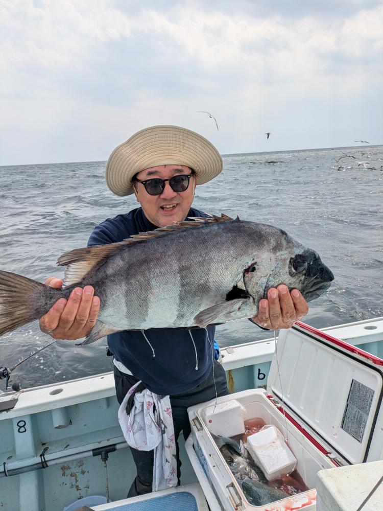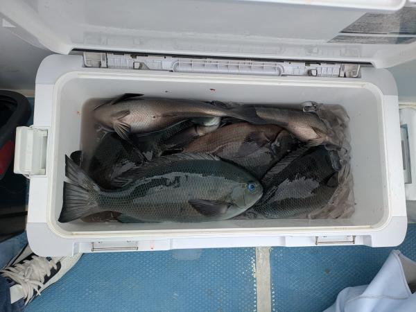 今日は朝からあたり活発再投入 再々投入もあたり出て朝のひと流しで皆様黒ムツゲット あさの2時間で色々いれて皆様お土産になり良いスタートきれました