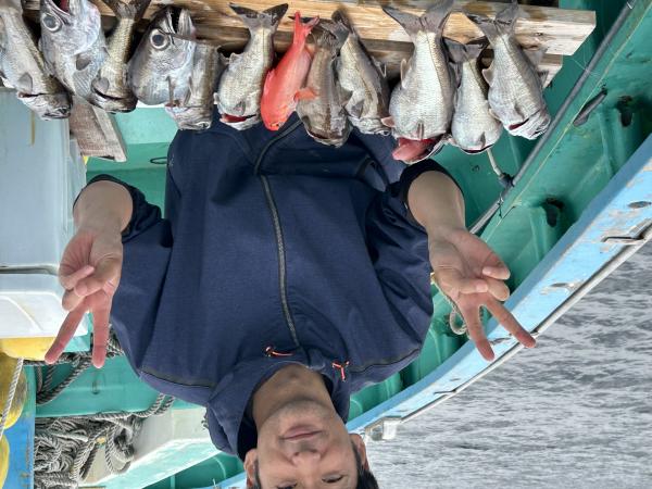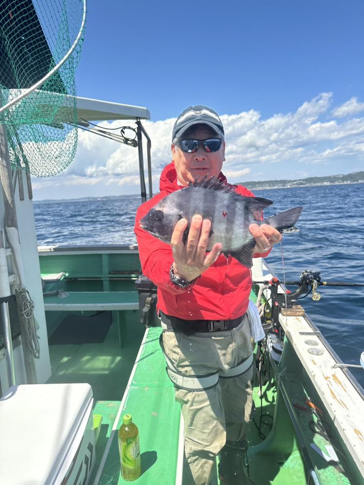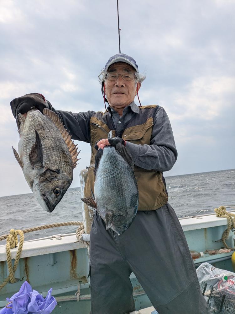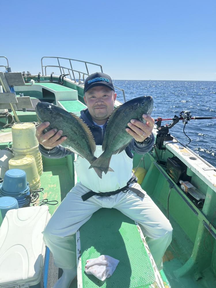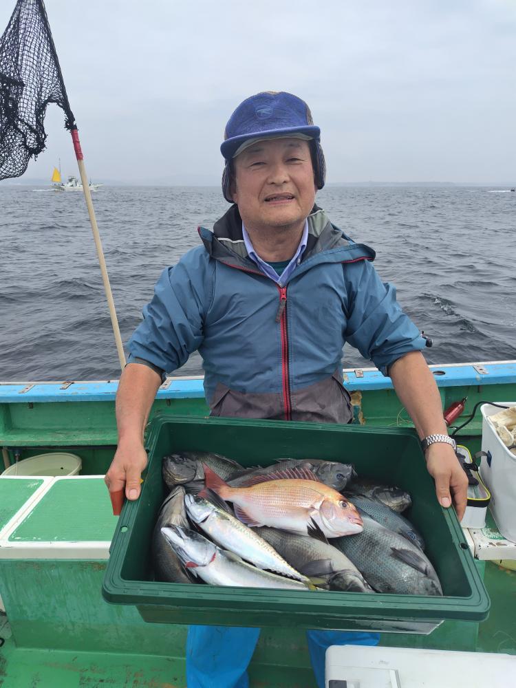 今日はヒラメ船お客様なかったので船の付け位置の都合で社長の代わりに出ました。前半マダイ狙い何とか顔見れ、その後は大アジ、中、大サバがたまに釣れてくれましたが本命は中々アタリ出ず、浅場に移動、マダイがすぐ顔出してくれましたがフグが邪魔してすぐ移動、マダイはその後、音無で後半メジナ狙いに行き、反応はバッチリで出たり、抜けたりでしたが手返しいいお客様はコンスタントにヒットしてくれ、メジナは10匹以上3名様。餌取りが多いところなので手返し、棚取りがしっかり出来てるお客様は釣りますね。メジナはあんまり長い仕掛けは今一のような感じでした。4.5〜6m位がいいような……
