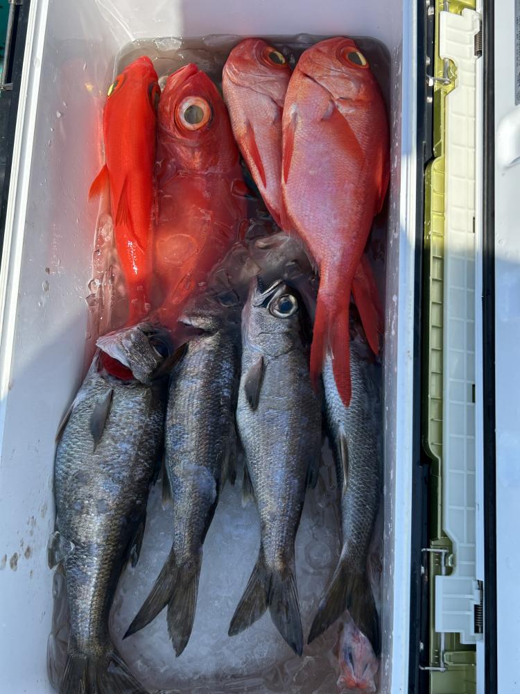 目玉賞品は赤ムツ 良型メダイ 良型カンコ 他に白ムツ5〜16尾夢カサゴ ドンコ サバ等