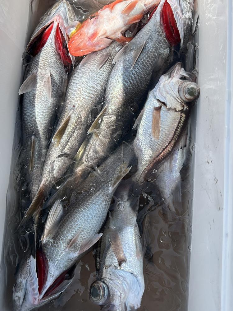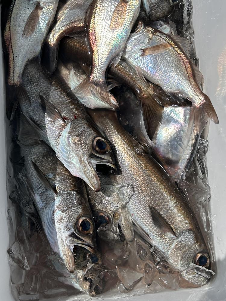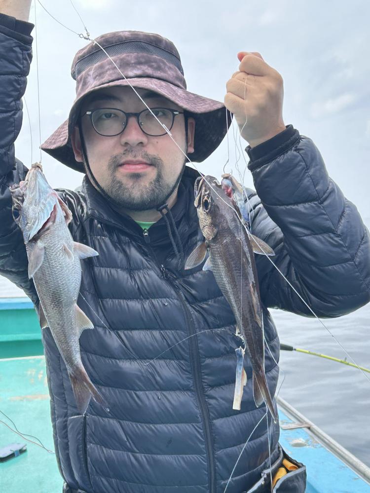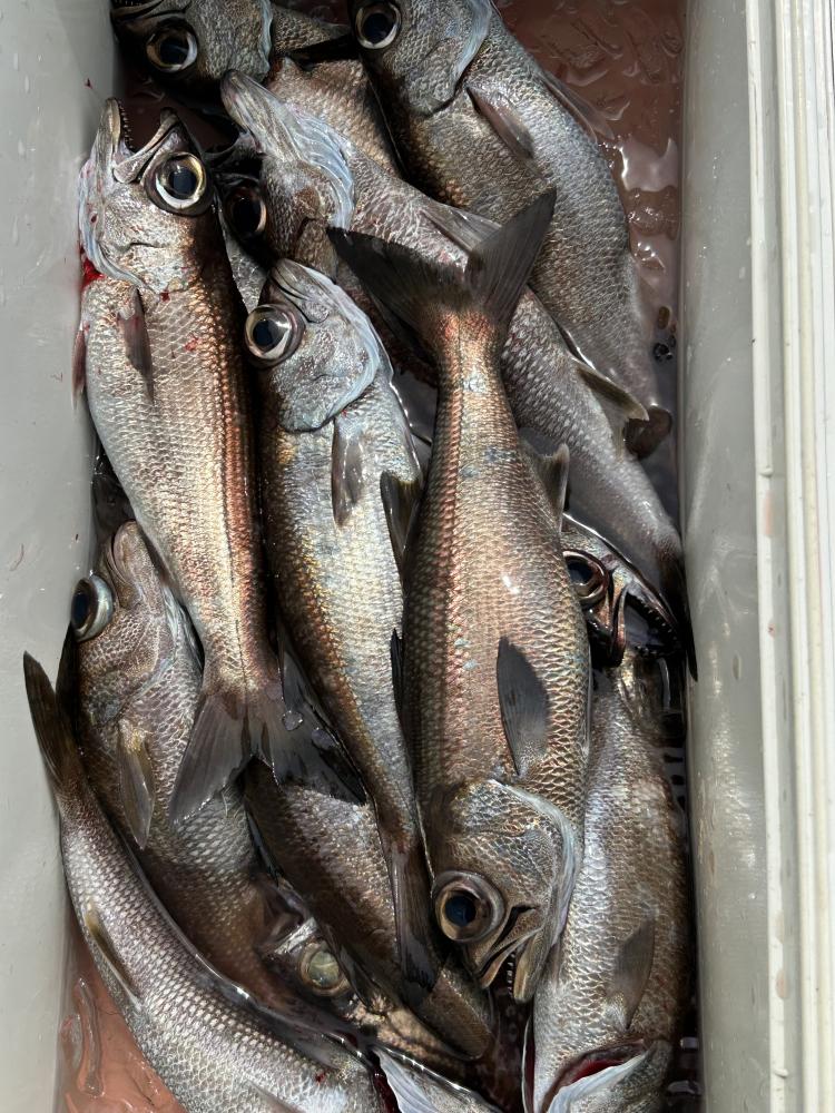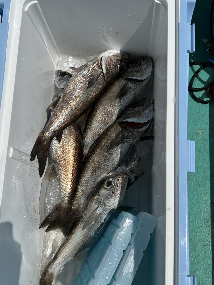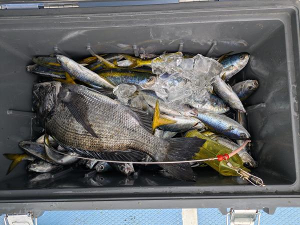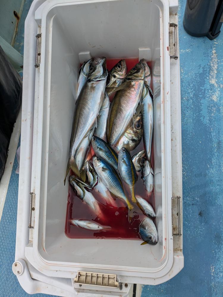 コマセのカゴはオモリが取り外せるカゴの方がいいです。サイズはFLか、M、Sサイズでお願い致します。赤のLサイズは使えません。今の時期は色々な魚種が釣れますので色々な食べ方でお召し上がり下さい。アジ、サバ、タカベ、イサキ、チカメキントキ、ヒメコダイ今日は6種目のおさかな達が顔見れました。竿は2.1m前後7:3調子が良さそうです。ミチイトはPE3ー5号150mは巻いといて下さい。オモリ80号、浅場で潮流れない時は60号でも可。船長に確認を。