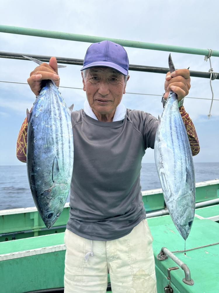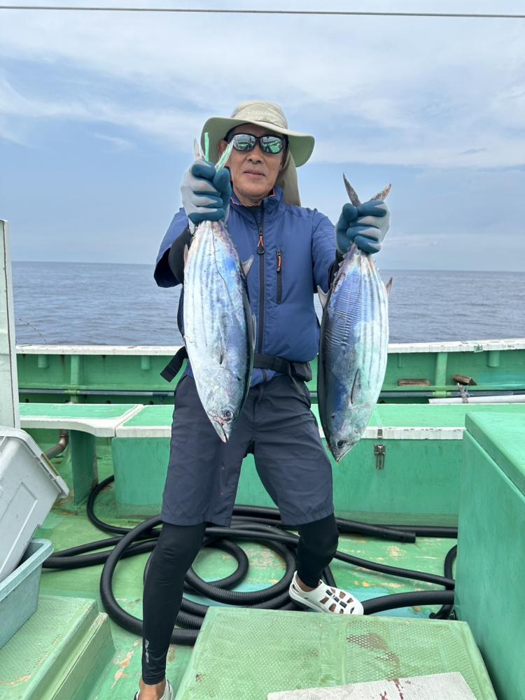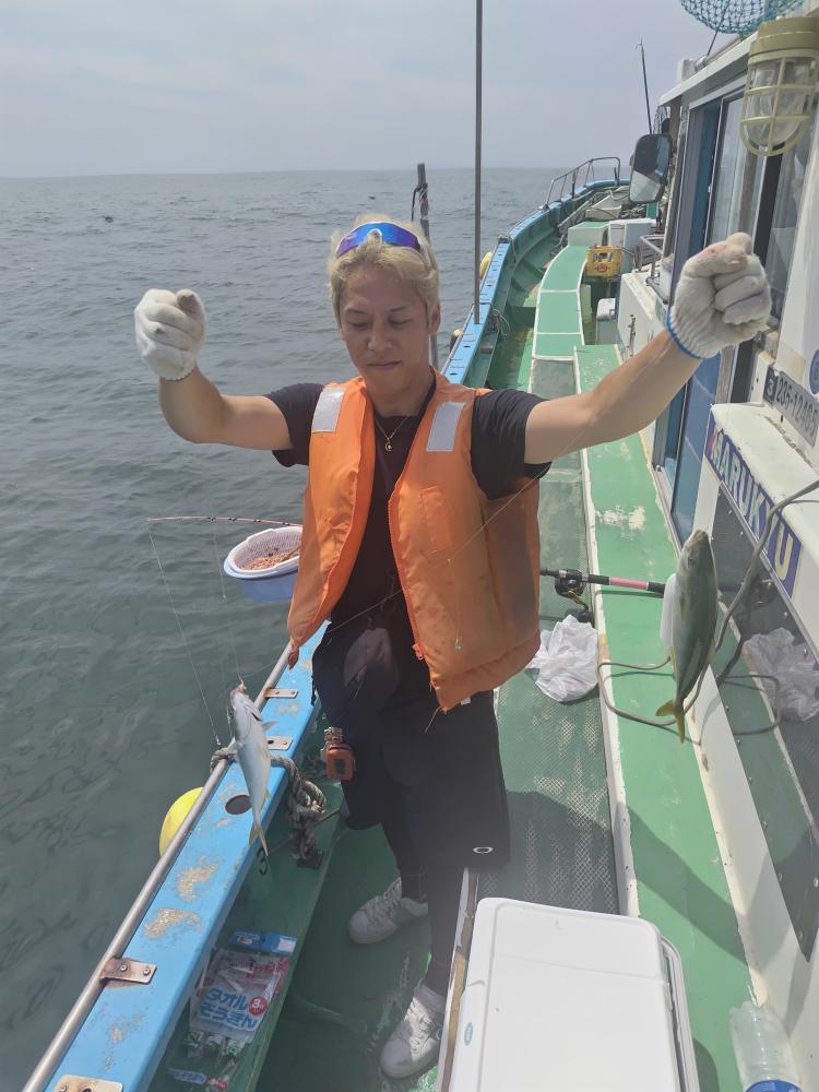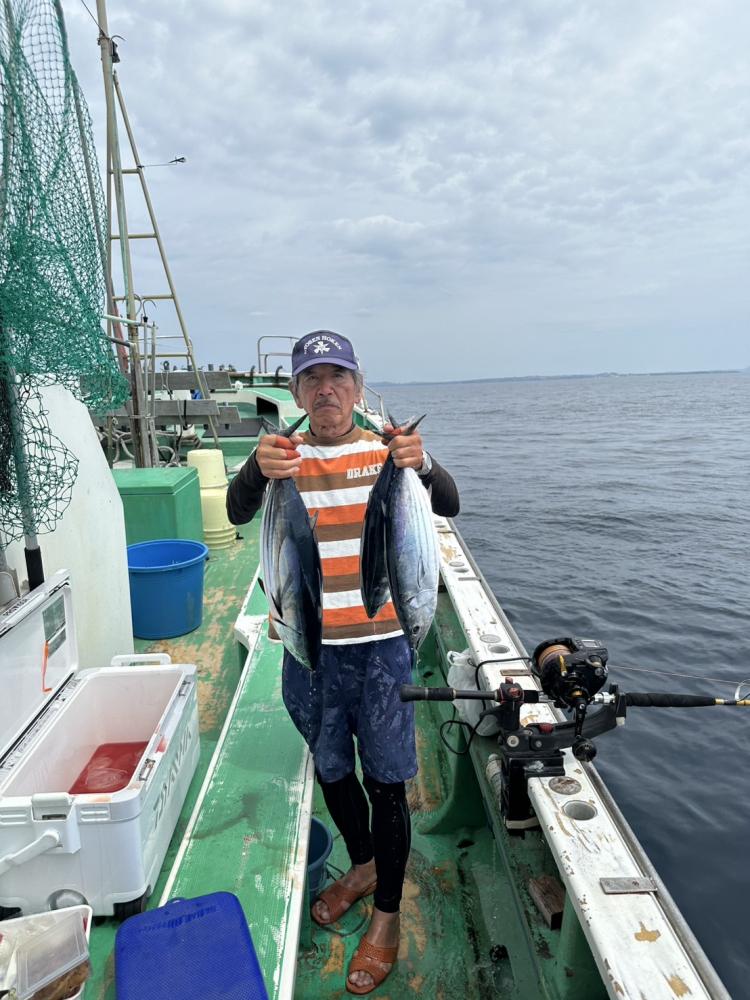 今日からワカシ、イナダ五目船がスタートしました。こないだまで浅場の根周りにかなりの魚影があったのですが昨日出た僚船が今一との一報でアマダイ船の僚船からワカシで降りないとの一報頂き、初日だったので素直に中層のふらつき反応を探しやり棚は水面から20mまでの層でポツポツ釣れ、後半は良型サバも交じりでアタリ活発でレンタルのお客様も楽しめほとんどのお客様クーラーギッシリでお土産十分でした。ルアーはワカシ4ー11匹、サバは10匹以上ずつ。マルソーダ交じり。反応バッチリで魚影濃そうです。バケシャクリ、イカ餌&ウィリー仕掛けが良さそうです。イカ餌は必ず持って行きましょう。コンビニ、スーパーなどで売ってるイカ素麺は使いやすいので出来れば買って来て下さい。船宿にも売ってますがハサミでカットお願い致します。ワカシはナメロウ、フライ、バターホイル焼き、刺し身何でも美味しく食べられます。ビギナーさんからベテランさんまで今年は良さそうなので是非チャレンジ下さい。ルアーでも楽しめそうです
