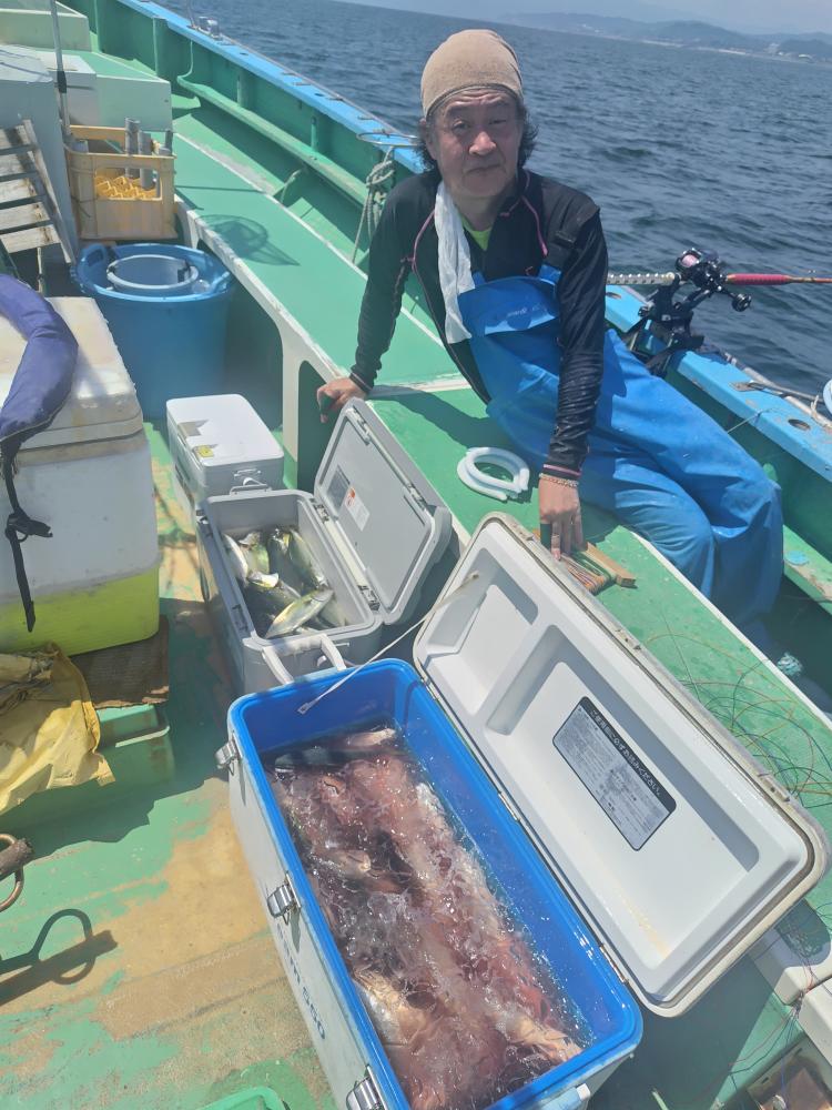 今日は両船共にビギナーさん多かったですが楽しめたと思います。金小アジ、ウルメイワシ、イトヨリなど交じり。別船ワカシ3ー20匹、サバ多数